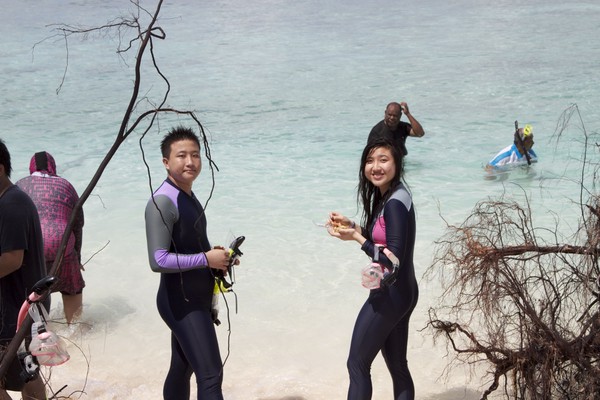 Anyway, it took us 2 hours to get to our first destination, the island of Kri Kecil (Little Kri). I really enjoy the ride; I climbed up to the top of the boat and just stayed there enjoying the scenery, looking at countless of small islands we passed by, still extremely lush and untouched by humans, with the bright and warm sunshine and occasional sea breeze–boy, it was wonderful. You can see pretty much no one in the vicinity, except occasionally there would be other boats passing by. Especially after coming back from a place where it’s snowing and gloomy and cold, 1000 times better. Okay, maybe I’m a bit exaggerating, but still, nothing beats the wonder of tropical islands!